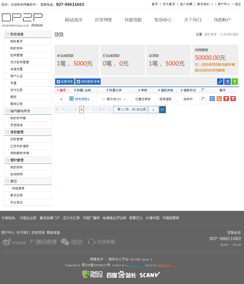 | 已发布的借款 | 当前用户已发布的借款记录 |